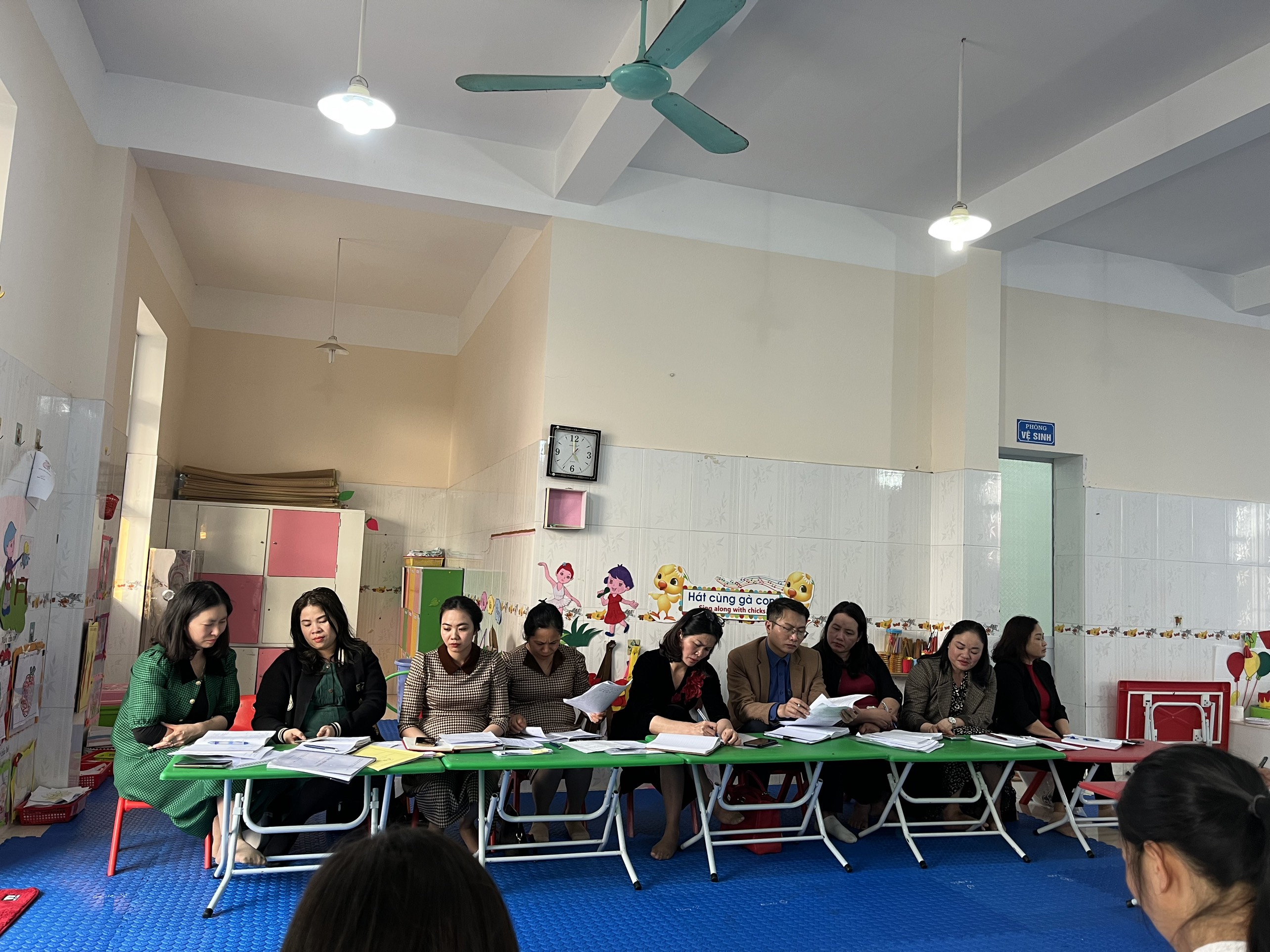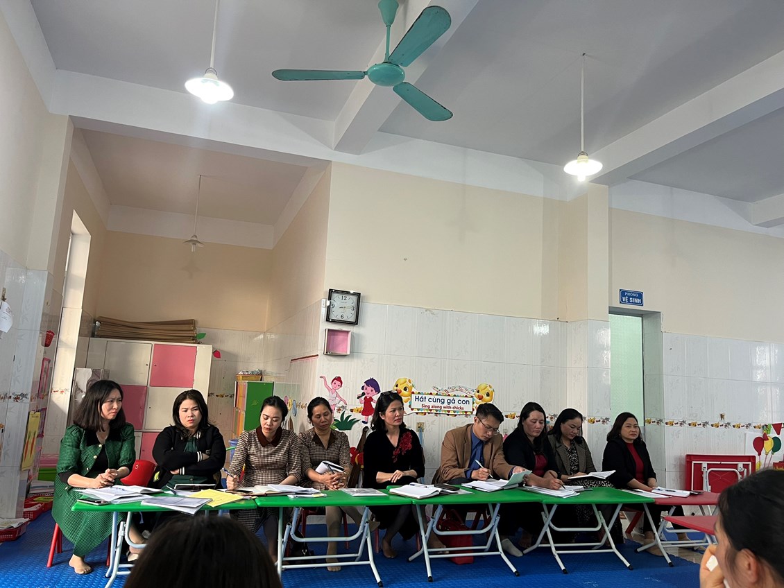Đoàn thanh tra chuyên ngành gồm các đồng chí: Bà Lương thị Thanh Thủy-Phó trưởng phòng giáo dục và đào tạo, Ông Nguyễn liên Bằng-Phó Trưởng phòng giáo dục và đào tạo, Bà Hoàng Thị Phương Thanh- Chuyên viên phòng giáo dục và đào tạo,Bà Nguyễn Thị Huệ-Nhân viên Phòng Giaó dục và Đào tạo,Bà Lê Thị Hà-Hiệu trưởng trường mầm non Quân, Bà Lê Thị Hường-PHT trường mầm non Hải Sơn, Bà Đinh Thị Phương Thảo-PHT trường mầm non Ngọc Xuyên. Tham gia đón đoàn có đồng chí Phạm Thị Thơi - Bí thư chi bộ - Hiệu trưởng nhà trường cùng tập thể cán bộ giáo viên trong trường.