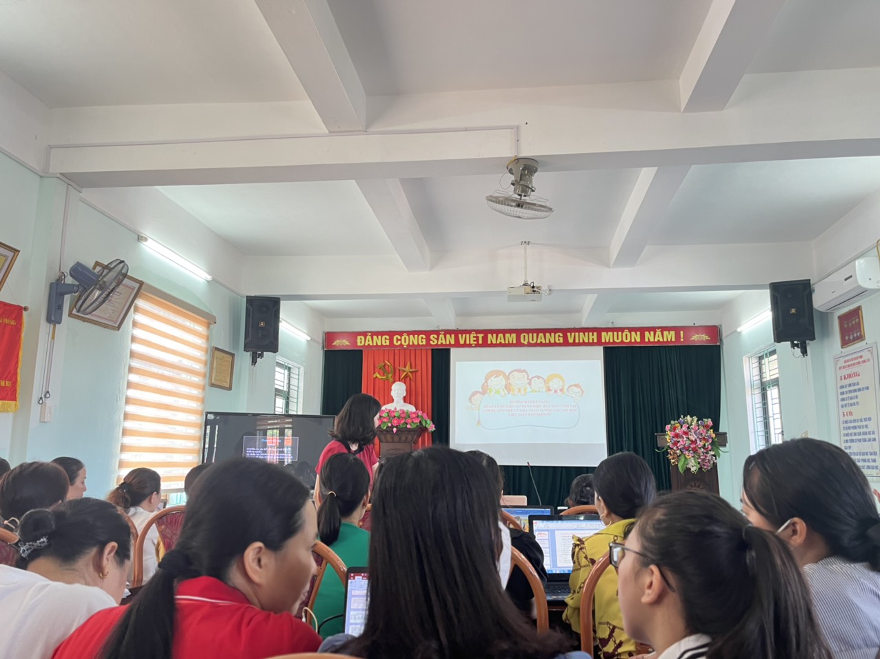 Giao viên trường Mầm non Hợp Đức tham gia buổi học tập huấn chuyên môn