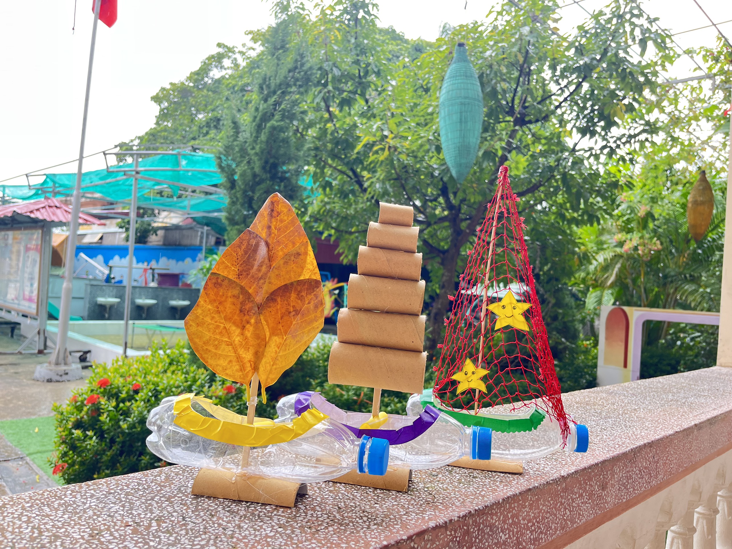 Ý tưởng từ các vỏ chai nhựa, Chi đoàn tiến hành chế tác thành những con thuyền màu sắc thể hiện tinh thần vươn khơi, bám biển của người dân miền biển, đồng thời với chất liệu là rác thải nhựa Chi đoàn làm thành những động vật quý hiếm như baba, rùa, làm thành nhưng giỏ hoa trang trí tại góc học tập. Sản phẩm mong muốn tuyên truyền đến ngư dân không nên xả rác thải khi tham gia đánh bắt hải sản, giữ gìn môi trường biển xanh, sạch, đẹp.