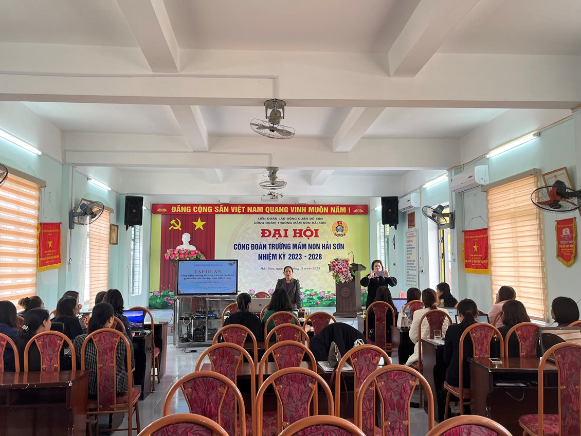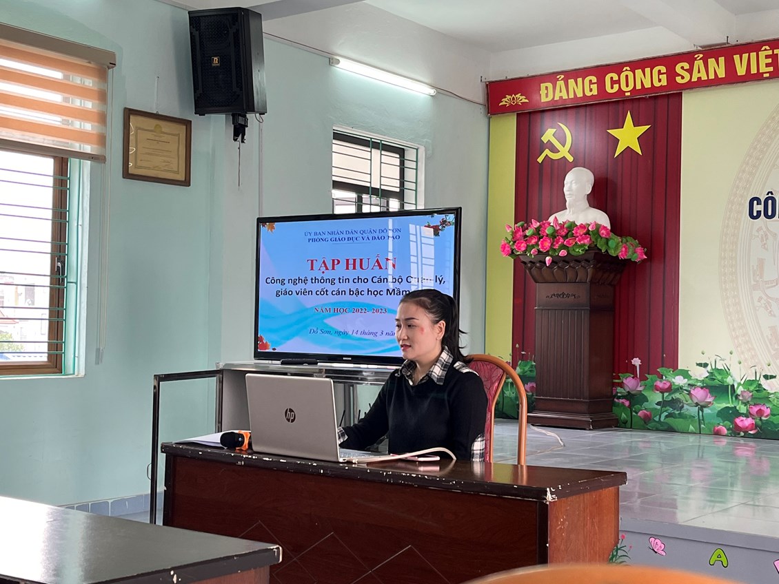 Sáng ngày ngày 14 tháng 3 năm 2023 được sự chỉ đạo của Phòng GD&ĐT quận Đồ Sơn về việc nâng cao chất lượng CNTT trong bậc học Mầm non. Cán bộ quản lý và giáo viên cốt cán Trường Mầm non Hợp Đức đã tham gia đầy đủ và nghiêm túc tiếp thu các nội dung đổi mới của buổi tập huấn CNTT tại Trường Mầm non Hải Sơn